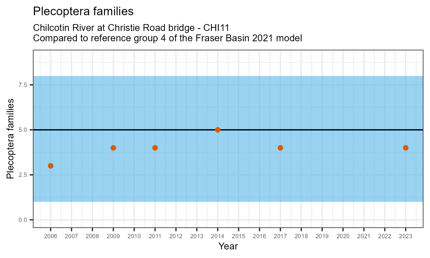 | Plecoptera families | 4.0 | 4.8 | 1.5 | |