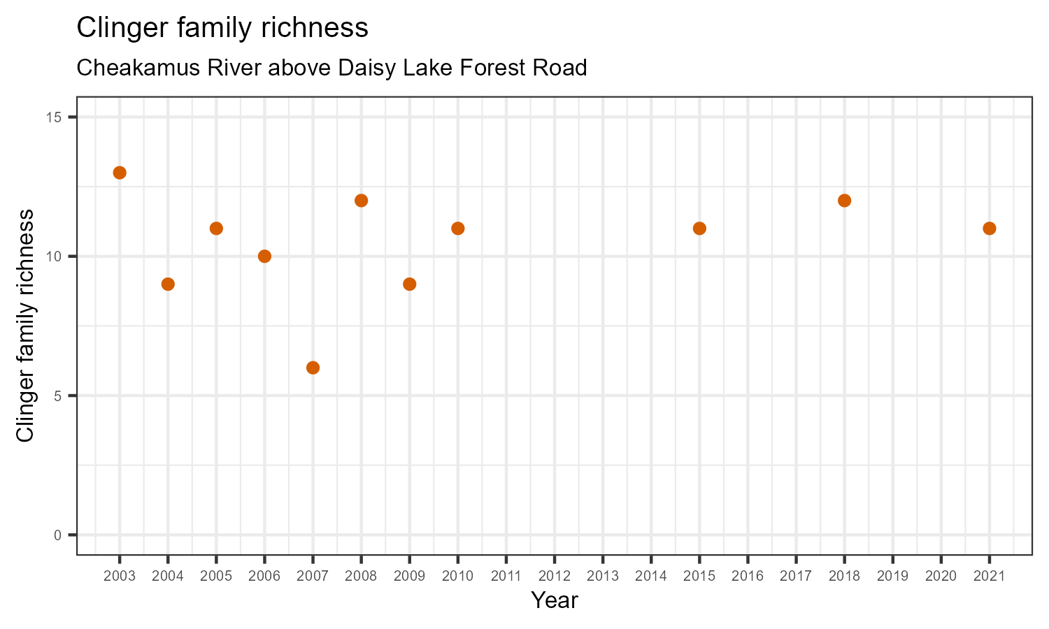 | Clinger family richness | 9.00 | 11.00 | 11.00 | 12.00 | 11.00 |