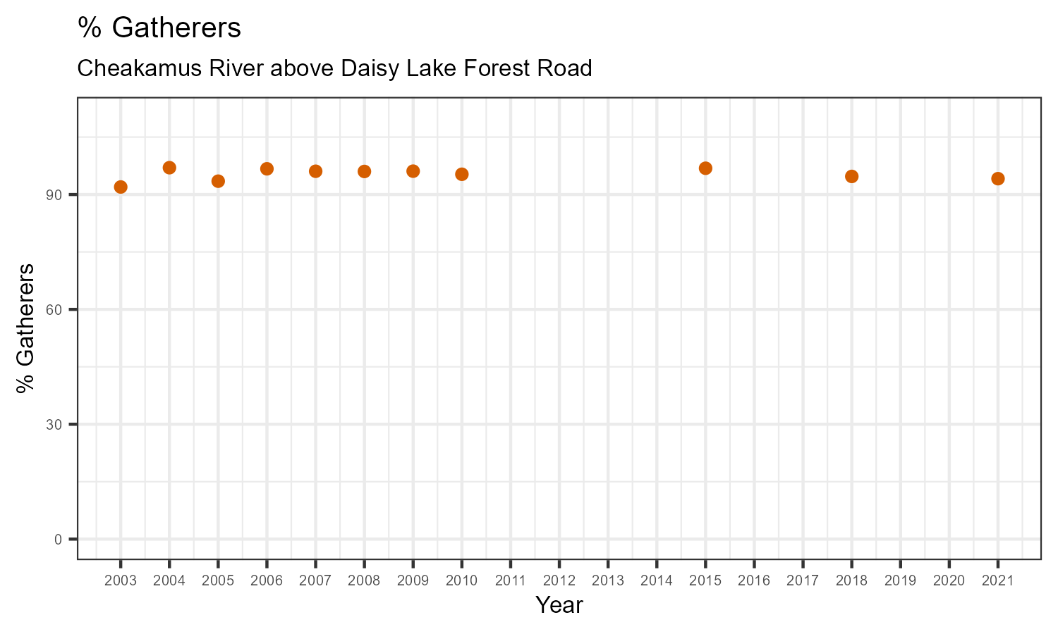 | % Gatherers | 96.10 | 95.29 | 96.86 | 94.72 | 94.13 |