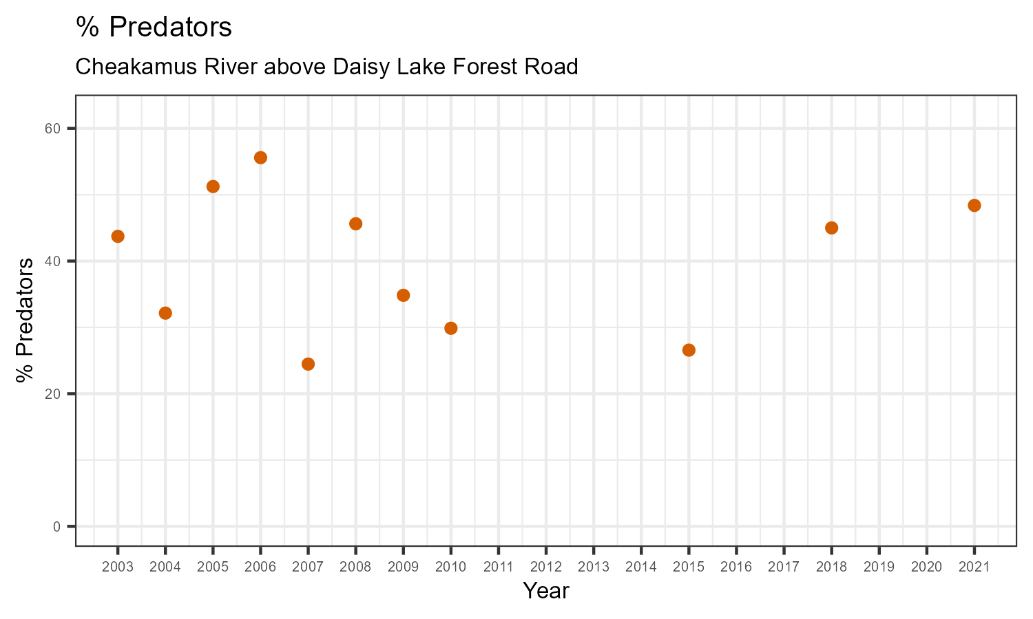 | % Predators | 34.83 | 29.87 | 26.57 | 45.00 | 48.39 |