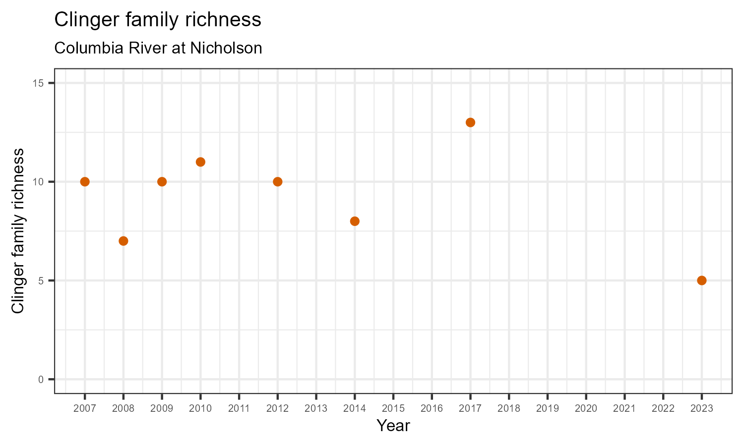 | Clinger family richness | 10.00 | 7.00 | 10.00 | 11.00 | 10.00 | 8.00 | 13.00 | 5.00 |