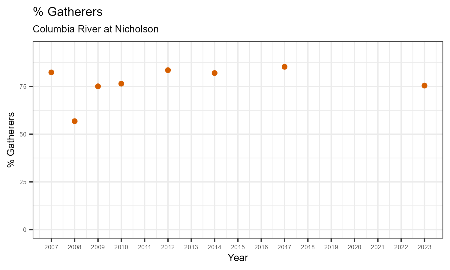 | % Gatherers | 82.38 | 56.81 | 75.08 | 76.47 | 83.54 | 82.03 | 85.33 | 75.47 |