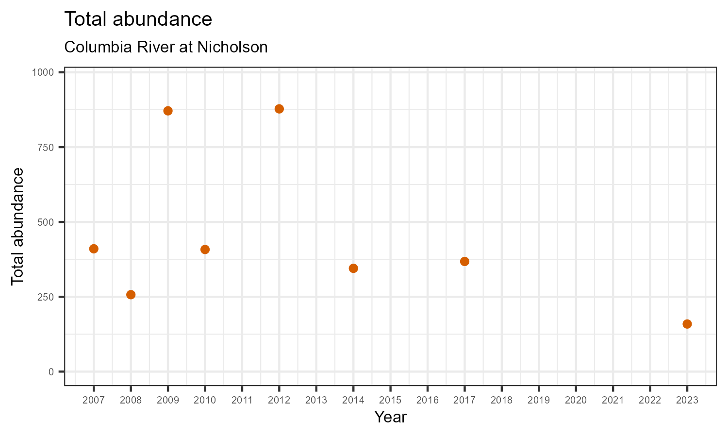 Columbia River at Nicholson can not be compared to a CABIN reference model because none of the regional models contain similar reference sites.