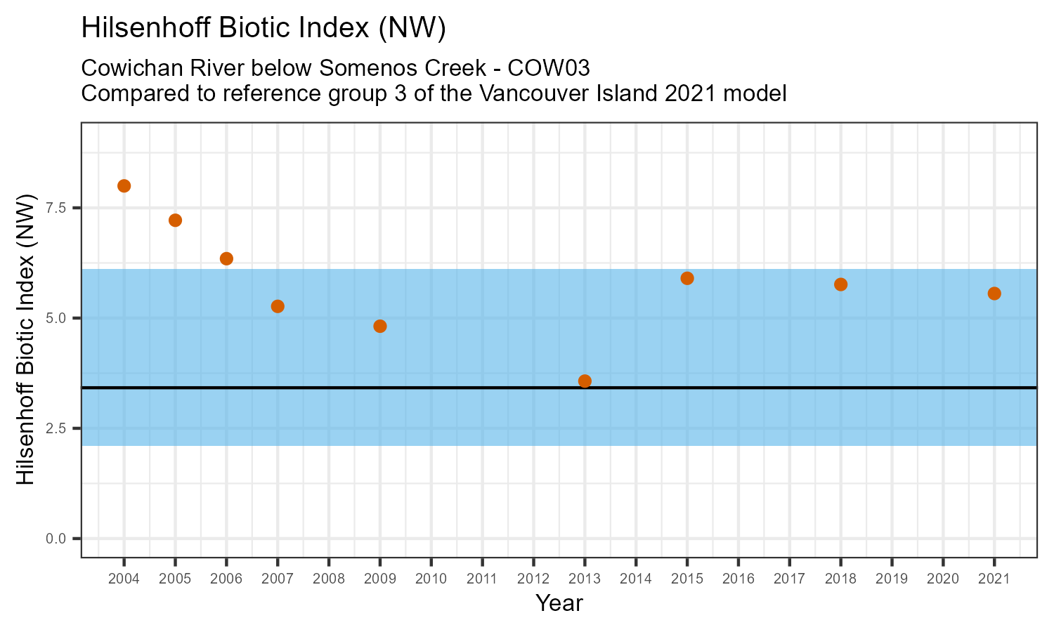 | Hilsenhoff Biotic Index (NW) | 8.00 | 7.22 | 6.35 | 5.27 | 4.82 | 3.57 | 5.90 | 5.76 | 5.56 | 2.10 | 3.42 | 6.12 |