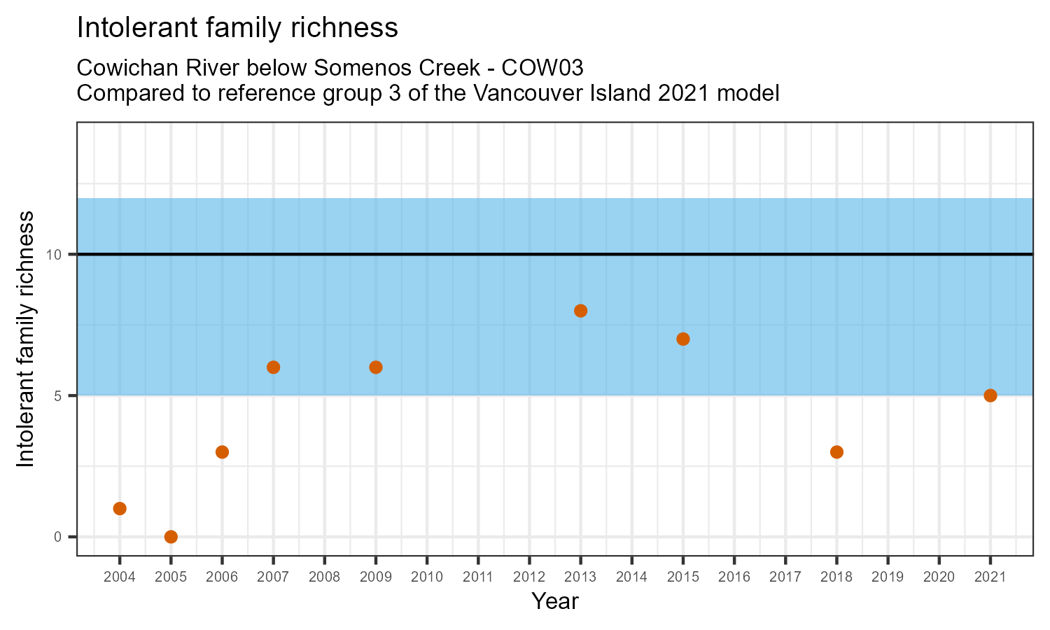 | Intolerant family richness | 1.00 | 0.00 | 3.00 | 6.00 | 6.00 | 8.00 | 7.00 | 3.00 | 5.00 | 5.00 | 10.00 | 12.00 |