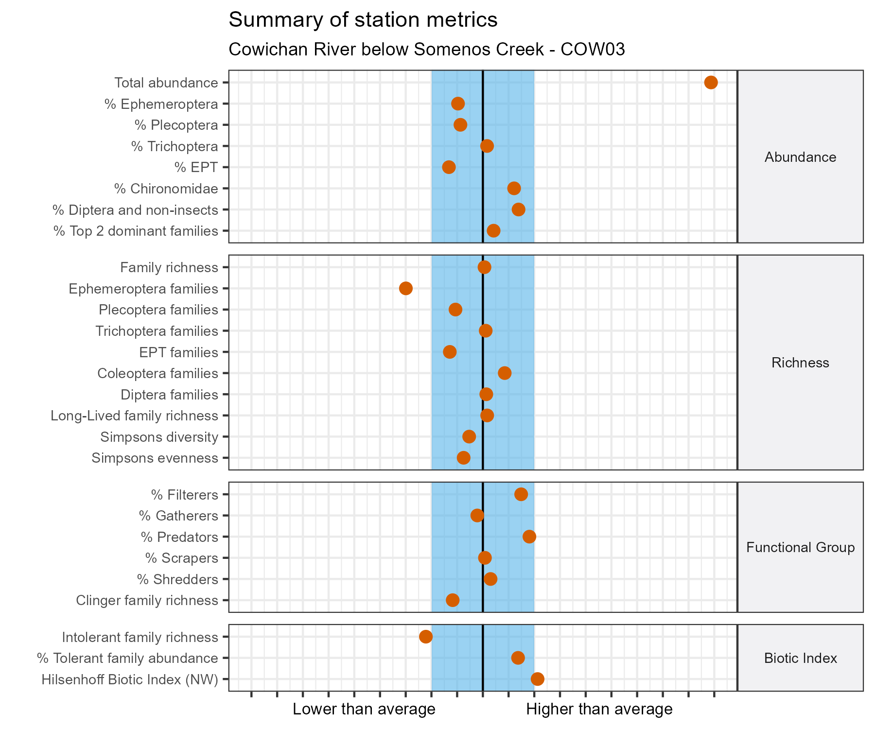 For additional context, individual metrics were calculated for all years of sampling at this station: