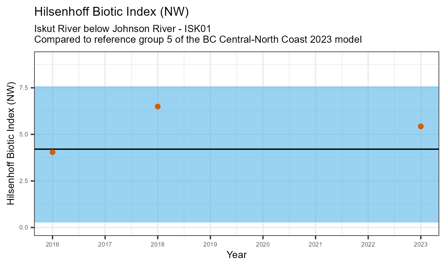 | Hilsenhoff Biotic Index (NW) | 5.4 | 4.0 | 1.5 |