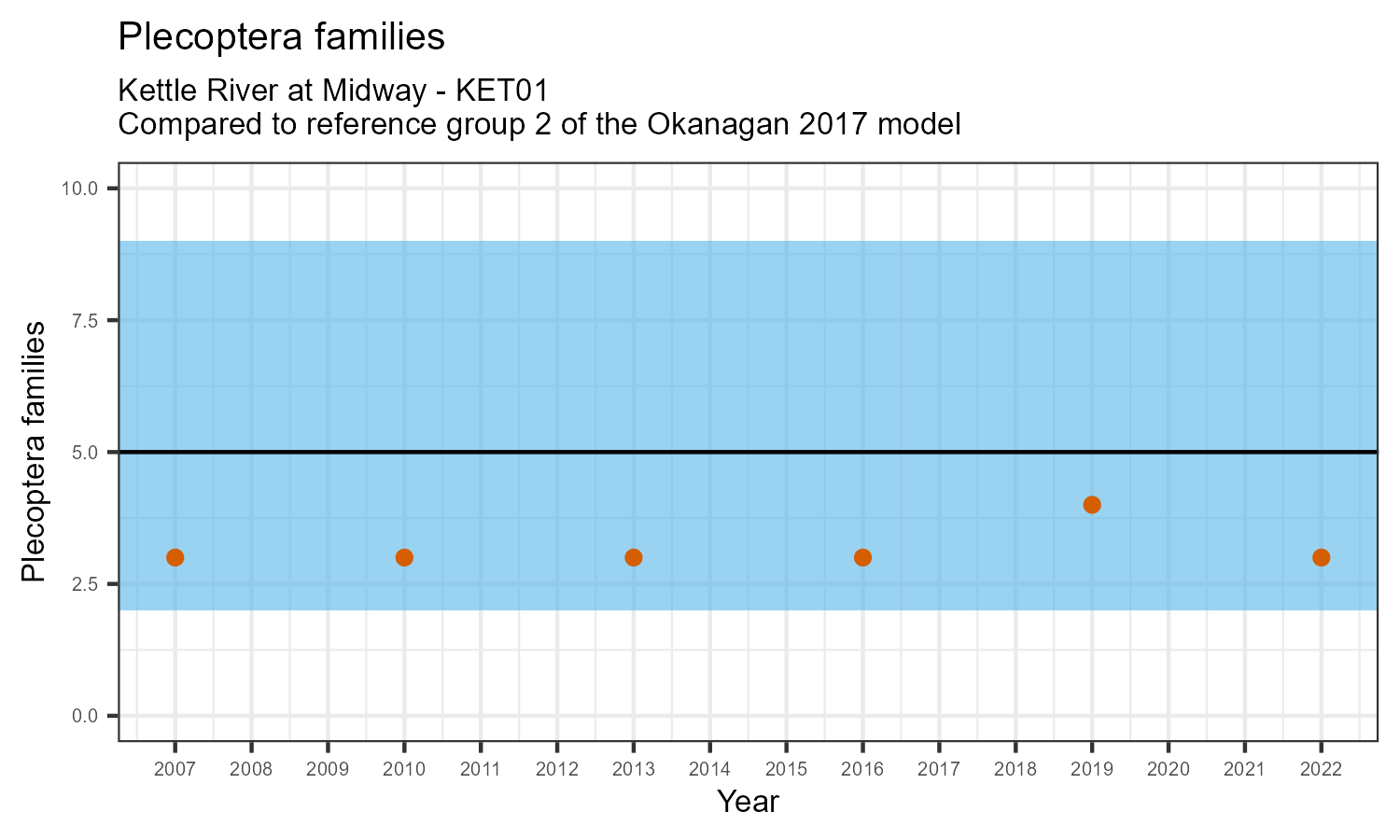 | Plecoptera families | 3.0 | 5.4 | 1.7 | |