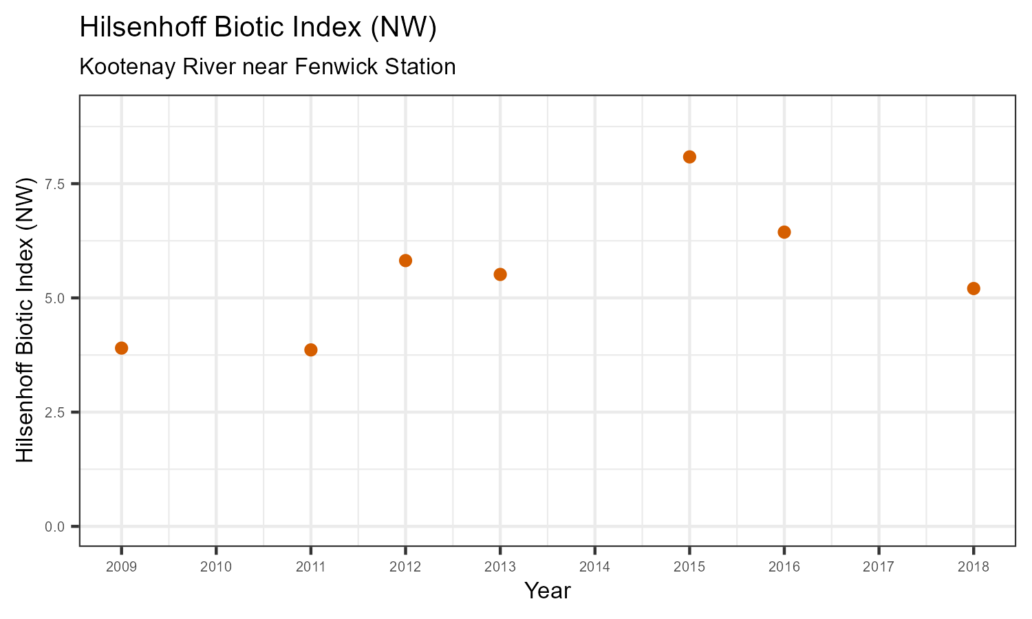 | Hilsenhoff Biotic Index (NW) | 3.90 | 3.86 | 5.82 | 5.51 | 8.09 | 6.44 | 5.21 |