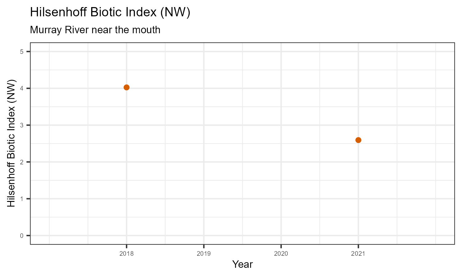 | Hilsenhoff Biotic Index (NW) | 4.03 | 2.59 |