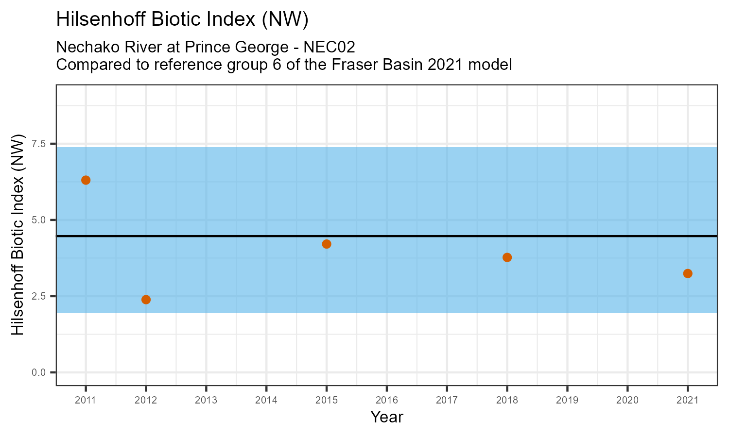 | Hilsenhoff Biotic Index (NW) | 3.2 | 4.5 | 1.1 |