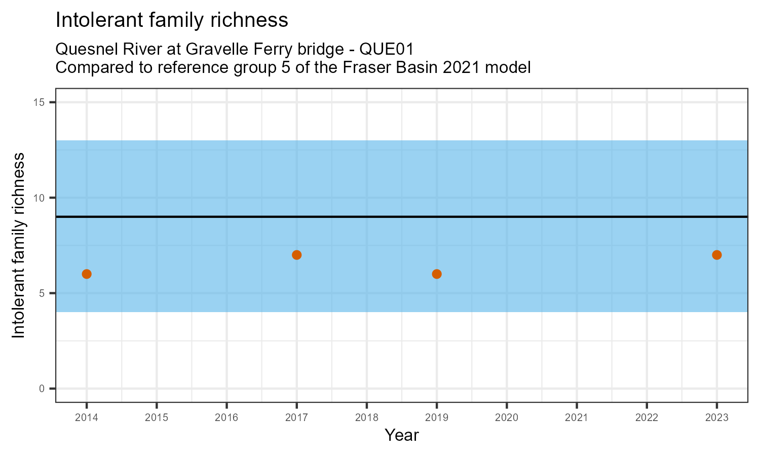 | Biotic Index | Intolerant family richness | 7.0 | 9.0 | 1.9 |