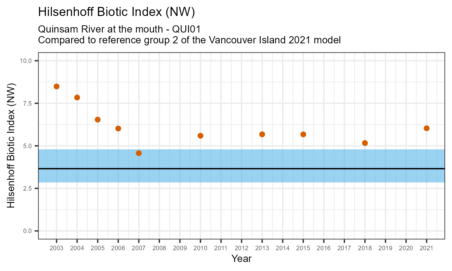| Hilsenhoff Biotic Index (NW) | 6.0 | 3.7 | 0.5 |
